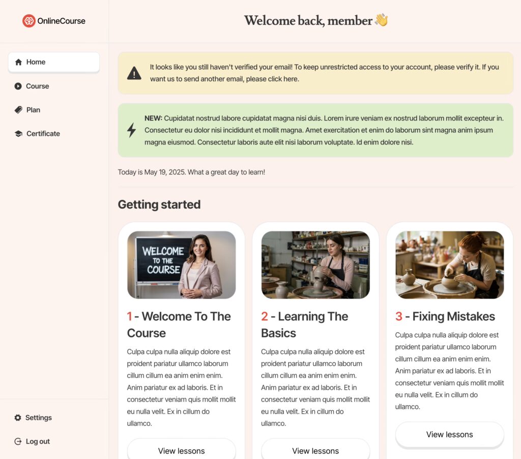 Welcome to our 2025 WordPress online course template.  This template is 100% free and contains everything you’d want out of an online course, including;